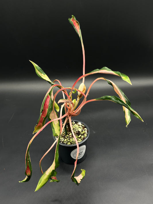 Anthurium papillilaminum (Variegated) x (Carlablackiae x Ace of Spades Tezula) (130W126)