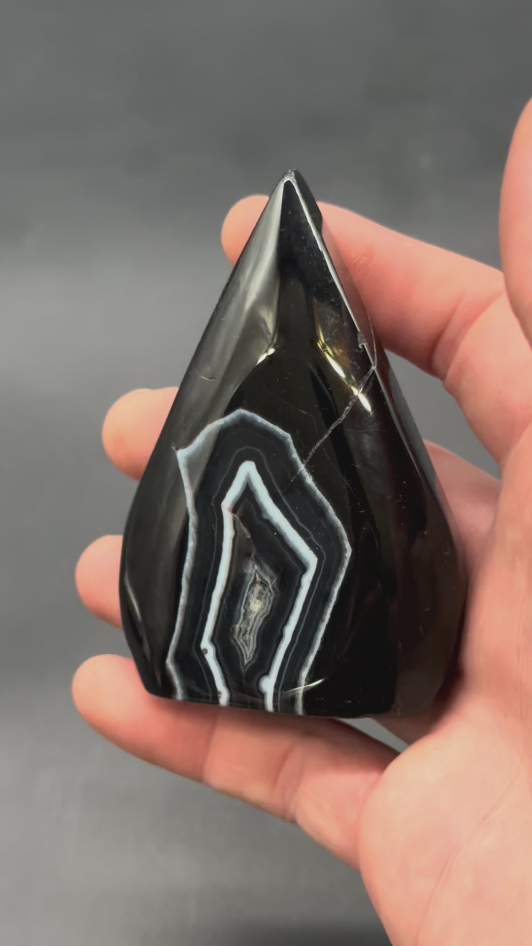 Hand carved and polished black agate mineral