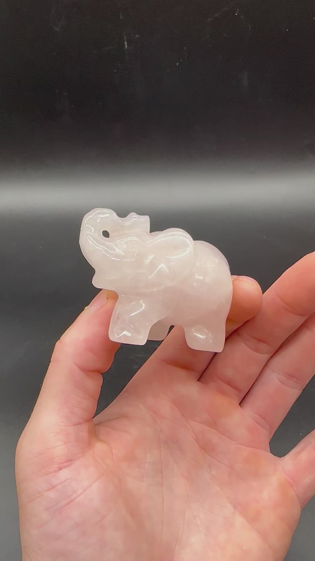 Hand-carved Rose Quartz elephant, 1.75-inch height.
